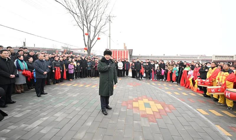 村文化廣場上十分熱鬧,村民們打起威風(fēng)鑼鼓、扭起秧歌歡慶佳節(jié)。看到總書記來了,人們高興地歡呼起來。習(xí)近平對鄉(xiāng)親們說,我們黨的根本宗旨就是為人民群眾辦好事,為人民群眾幸福生活拼搏、奉獻(xiàn)、服務(wù)。我們?nèi)缙诖蜈A了脫貧攻堅(jiān)戰(zhàn),如期實(shí)現(xiàn)了全面建成小康社會目標(biāo),現(xiàn)在踏上了全面建設(shè)社會主義現(xiàn)代化國家新征程。建設(shè)現(xiàn)代化國家離不開農(nóng)業(yè)農(nóng)村現(xiàn)代化,要繼續(xù)鞏固脫貧攻堅(jiān)成果,扎實(shí)推進(jìn)鄉(xiāng)村振興,讓群眾生活更上一層樓,在推進(jìn)農(nóng)業(yè)農(nóng)村現(xiàn)代化中越走越有奔頭。